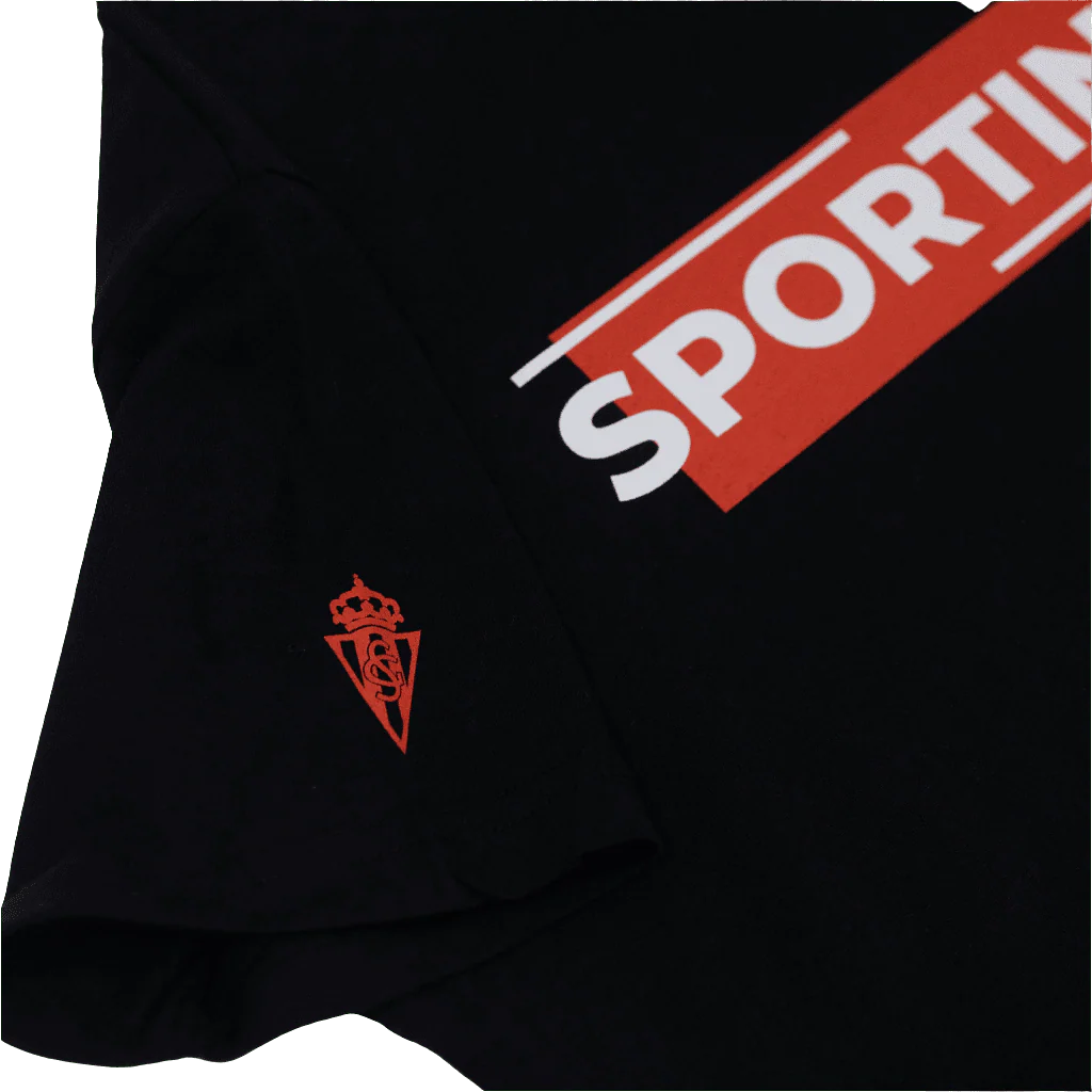 Para que los toda la familia pueda presumir de su pasión por el Real Sporting. Esta camiseta negra con diseño "SPORTING" en el pecho en manga corta es perfecta para cualquier ocasión.