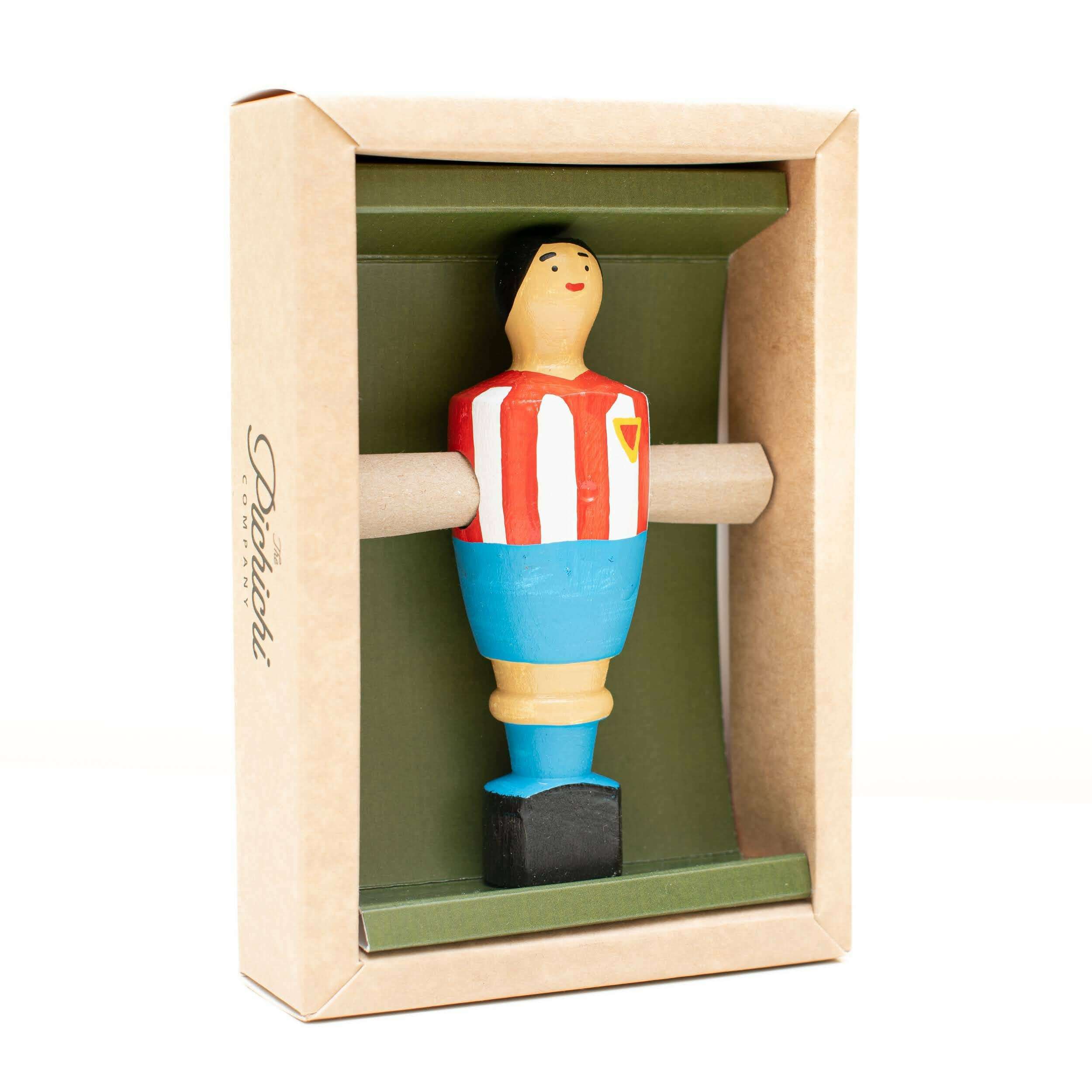 Completa tu futbolín con el auténtico jugador del Sporting de Gijón, fabricado por Coolligan en madera de haya y pintado a mano en nuestro taller. La madera procede de bosques sostenibles españoles y europeos. Tanto el packaging del jugador, como las cajas que los contienen (agropaper 100% biodegradable) se hacen en España con certificaciones de sostenibilidad.