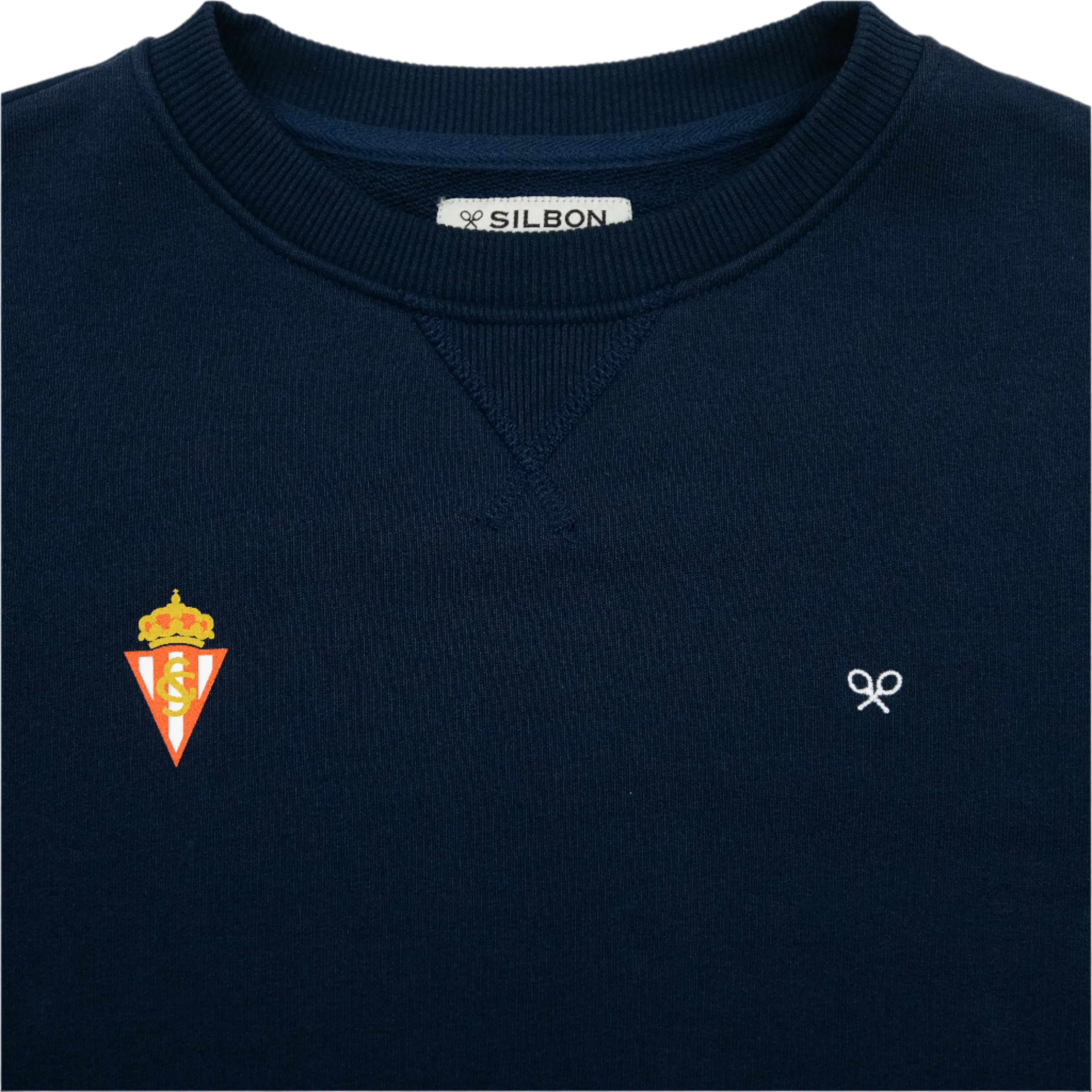Disfruta de un estilo deportivo y elegante con nuestra sudadera azul marino con el escudo en el pecho. Perfecta para lucir en cualquier ocasión, demuestra tu pasión por la moda y el deporte con esta sudadera de alta calidad. 90% algodón 10% poliéster.